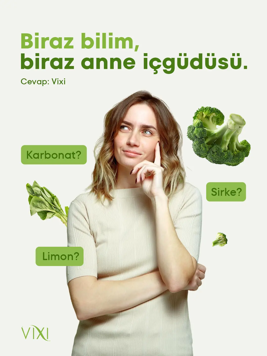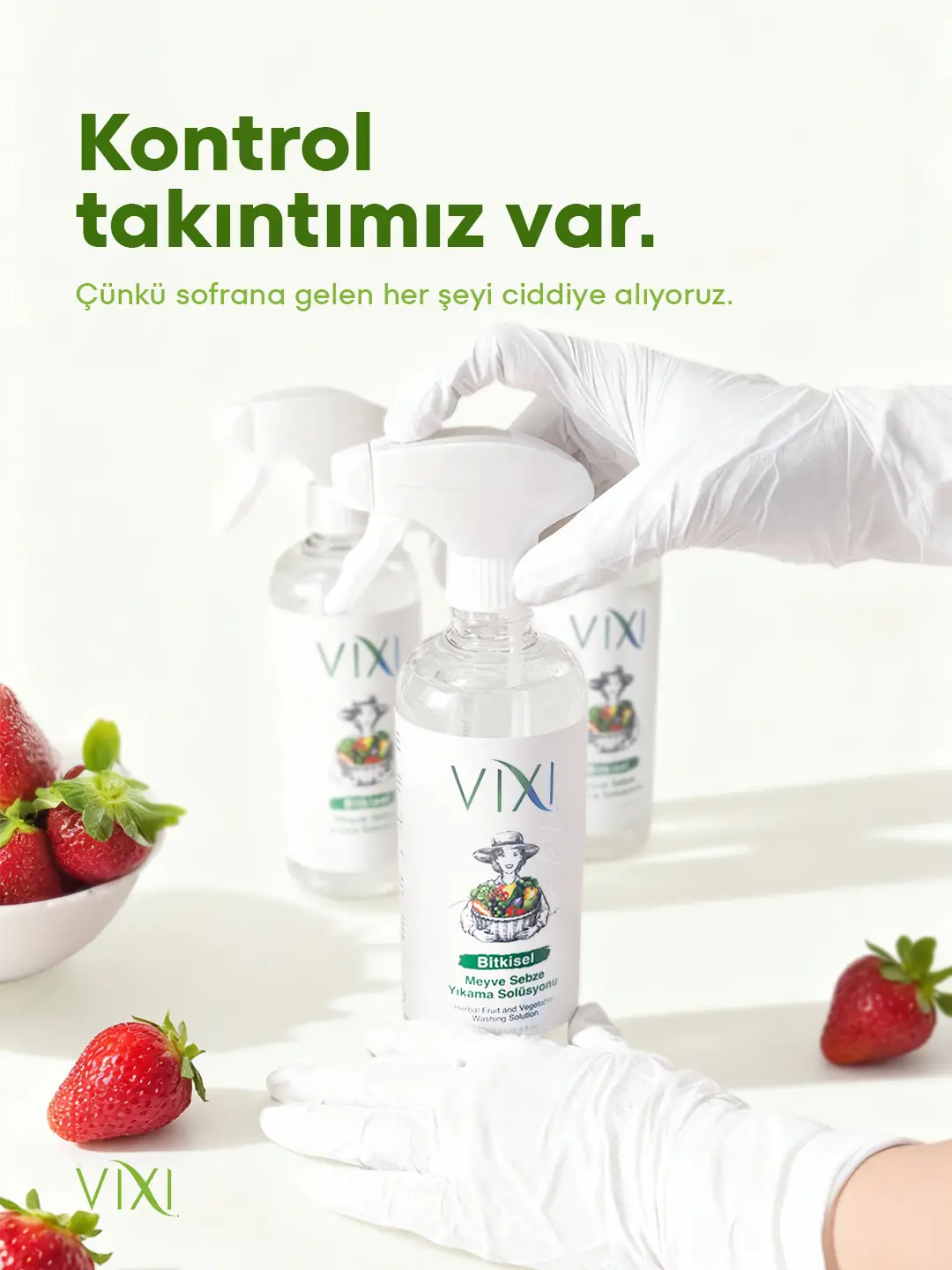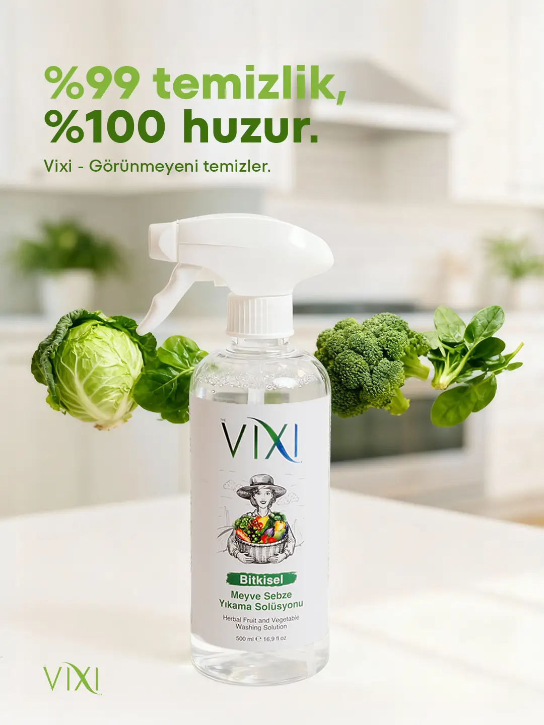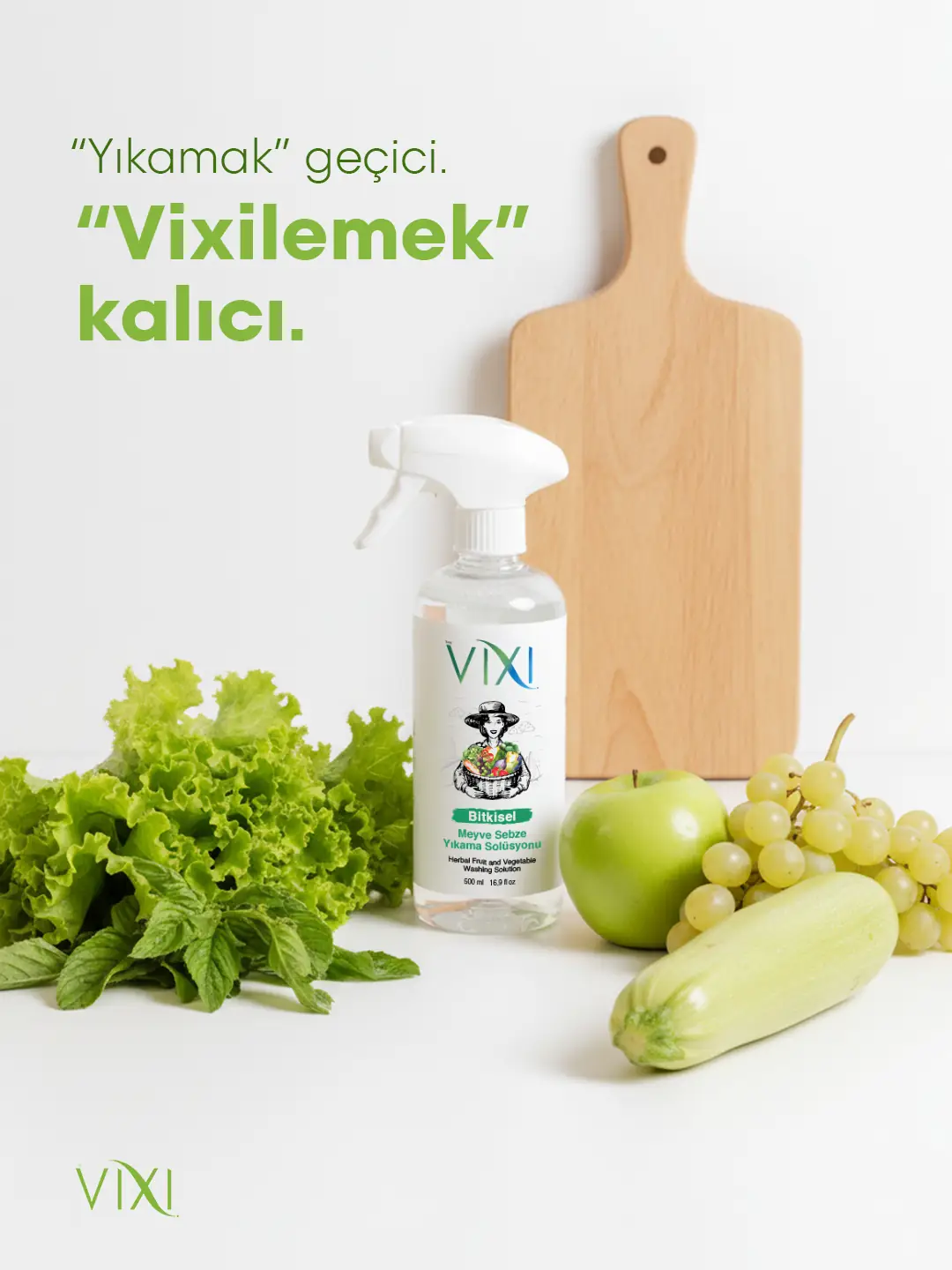 The Vixi, bu soruya doğadan ilham alan ve bilimle desteklenen bir çözüm üretmek için geliştirildi.Bitkisel içerikli formülü, gıdayla temasa uygunluğu ve akredite laboratuvar testleriyle; meyve ve sebzelerdeki kalıntıların uzaklaştırılmasına yardımcı olur.